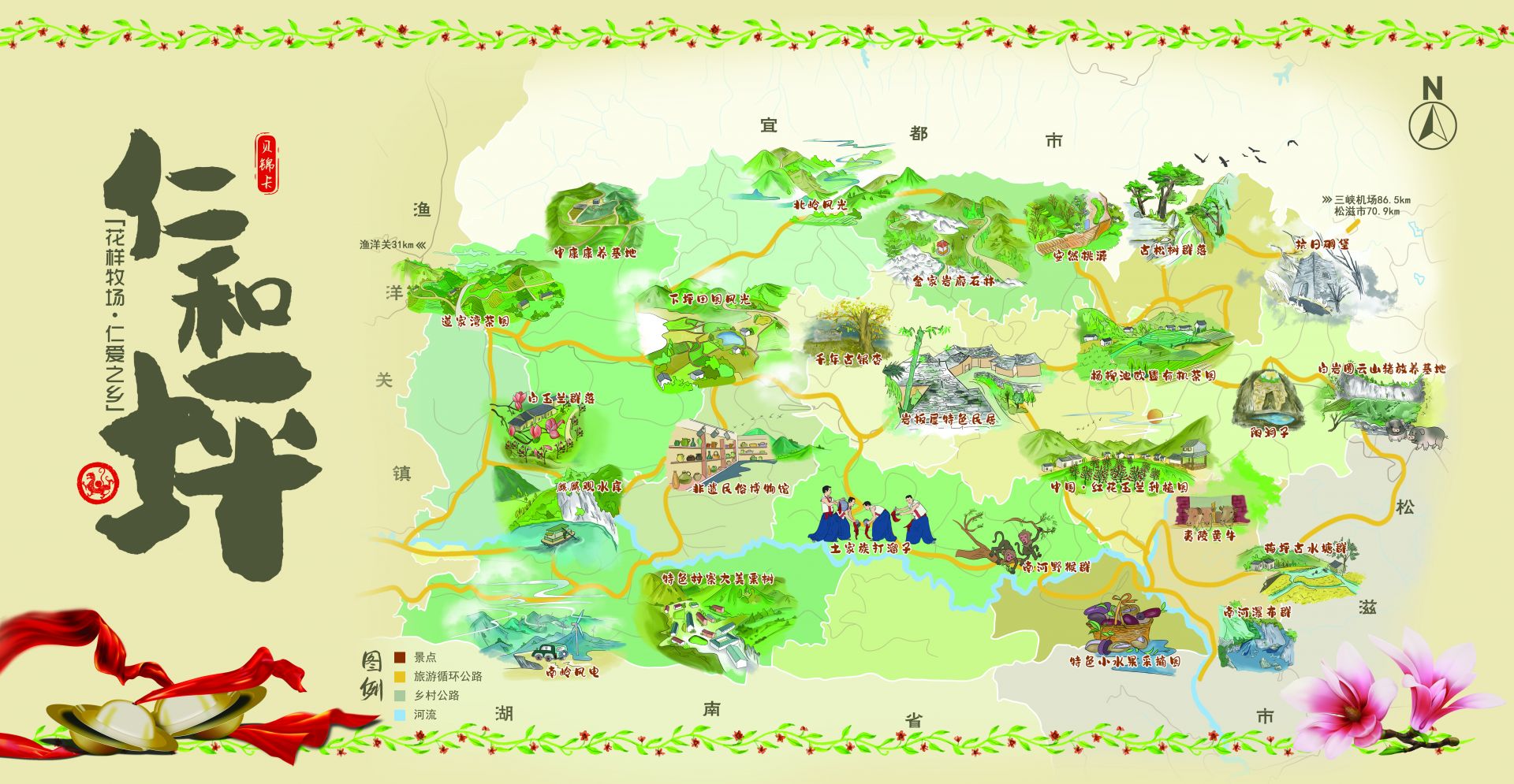摊开仁和坪镇全域旅游手绘地图,“出门俱是看花人”的盛况在四季流转中轮番上演——春季,玉兰擎盏、油菜灼灼;夏季,映山红开遍岭上;秋季,稻田观金、银杏摇曳;冬季,梅林缀枝、雅趣盎然。