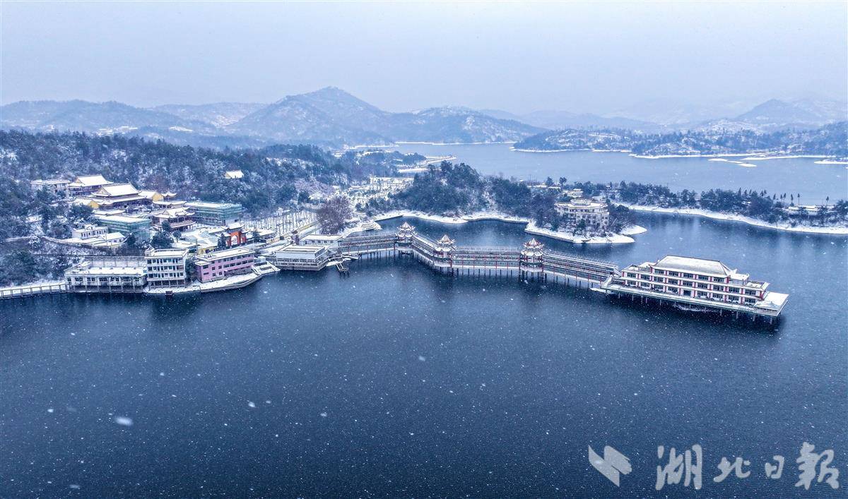 受强冷空气影响,1月20日,武汉市新洲区迎来今冬首场降雪天气。位于东北部的道观河风景区,纷飞的雪花与静谧的河水、古朴的建筑相映成趣,勾勒出冬日的诗意线条,吸引了众多市民和摄影爱好者前往观赏记录。(视界网 沈雷平 摄)