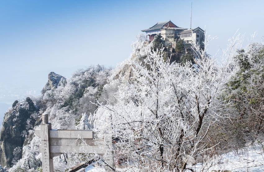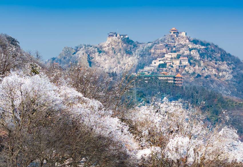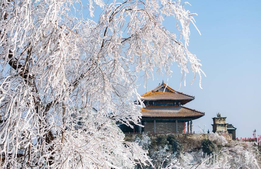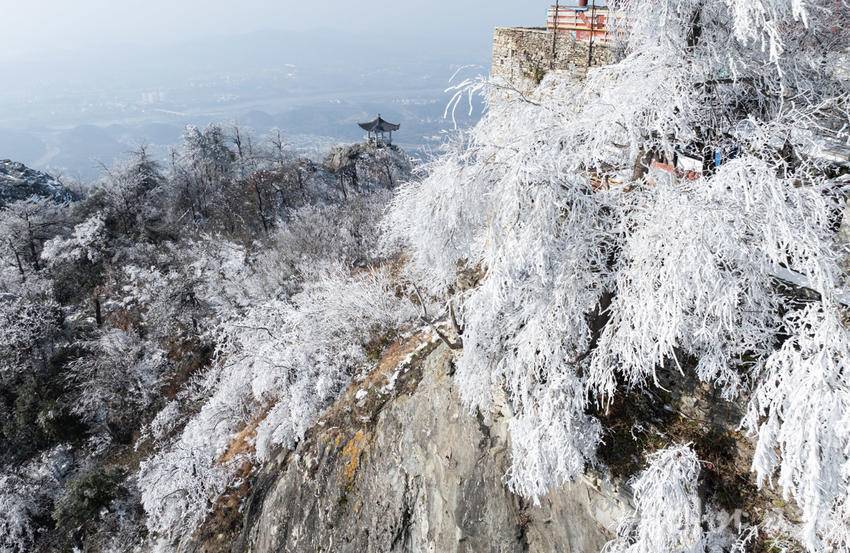 1月22日,雪后初晴的武汉木兰山,凌冰裹枝如琢玉,尽展中式山水之美。(湖北日报全媒记者 柯皓 摄)