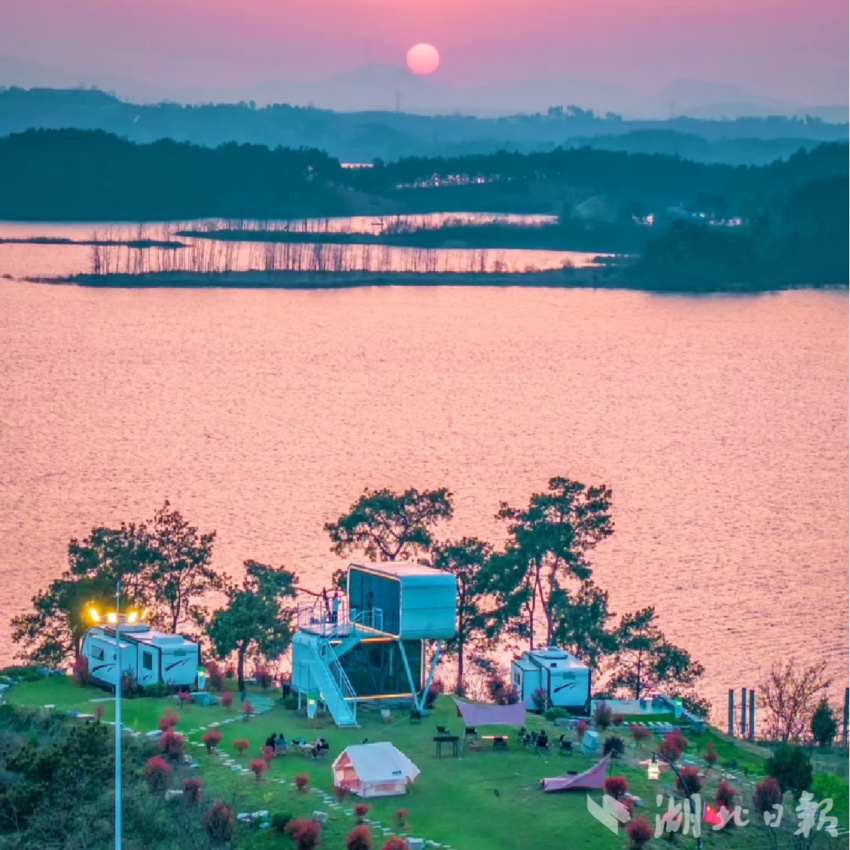 沿着这条4800米长的道路前行,视野豁然开朗。这里是广水市重点打造的“月光海·渔火露营景区”,也是全省知名的“城市客厅”。