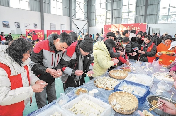 活动现场,大家一起包饺子 摄影:楚天都市报极目新闻记者黄士峰