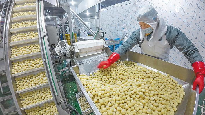 进入腊月,位于枝江的湖北覃姐食品有限公司正开足马力忙生产,目前企业每天可销售鱼糕约18吨、鱼丸约20吨,最高日产量达58吨,销售收入同比增长5%,产销势头强劲。近年来,枝江市助力龙头企业新建冷库、引进自动化生产线;同时积极推动拳头产品融入航空食品供应链,让“枝江味道”走向海内外,推动水产养殖与精深加工产业链式发展。 (湖北日报全媒记者 刘曙松 通讯员 郑子贤 田雪莲 摄)