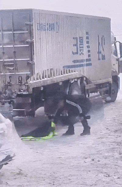 因路面结冰打滑