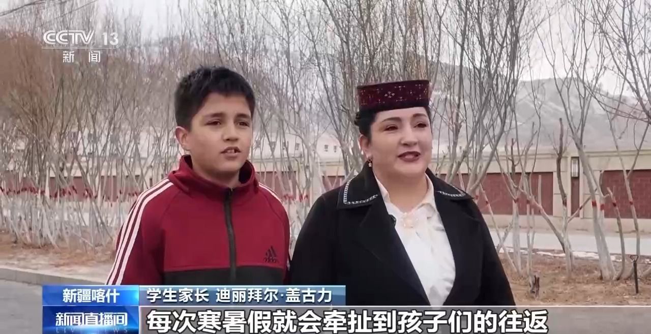 学生家长 迪丽拜尔·盖古力:每次寒暑假就会牵扯到孩子们的往返,有政府专门派大巴车送孩子,还有警察护航,我们非常放心、安心。
