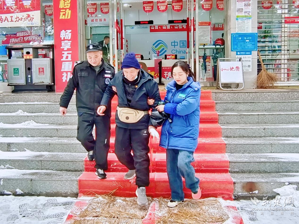 “真是太谢谢你们了!年纪大了就怕雪天摔跤,你们想得太周到了!”77岁的王大爷紧紧握住营业厅经理杜倩的手连连道谢,脸上洋溢着安心的笑容。