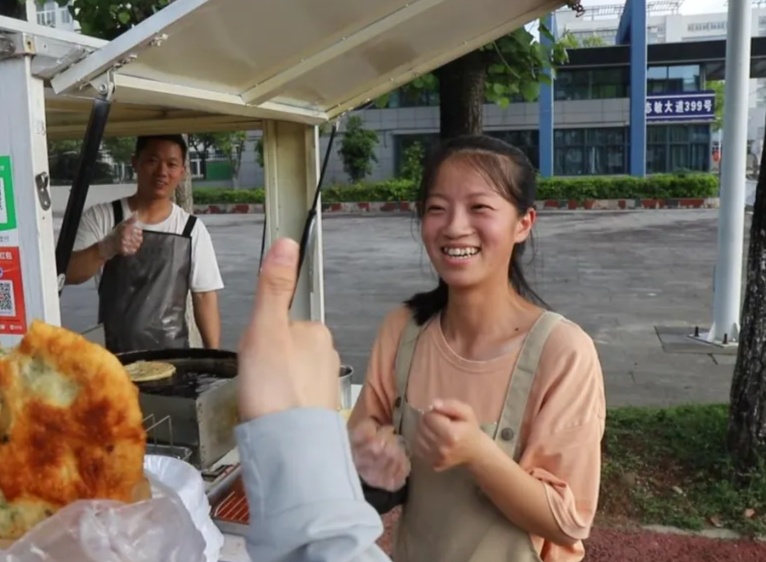 起初,夫妻俩的摊位在江西医学高等专科学校大门右侧,存在一定的占道经营问题和安全隐患,2025年8月,社区工作人员和城管部门为夫妻俩安排了管理更规范的新摊位。然而试营业几天后,他们通过文字向工作人员表达:老位置有熟悉的回头客,学生来买也更方便。了解这一情况后,上饶市信州区茅家岭街道的工作人员再次协调,与周边商户耐心沟通,最终在符合管理规定的前提下,扩大了从事经营活动的区域,把夫妻俩原来的摊位设置为正规摊位,帮助他们保住了那个承载着熟客情谊与烟火气息的“老地方”。