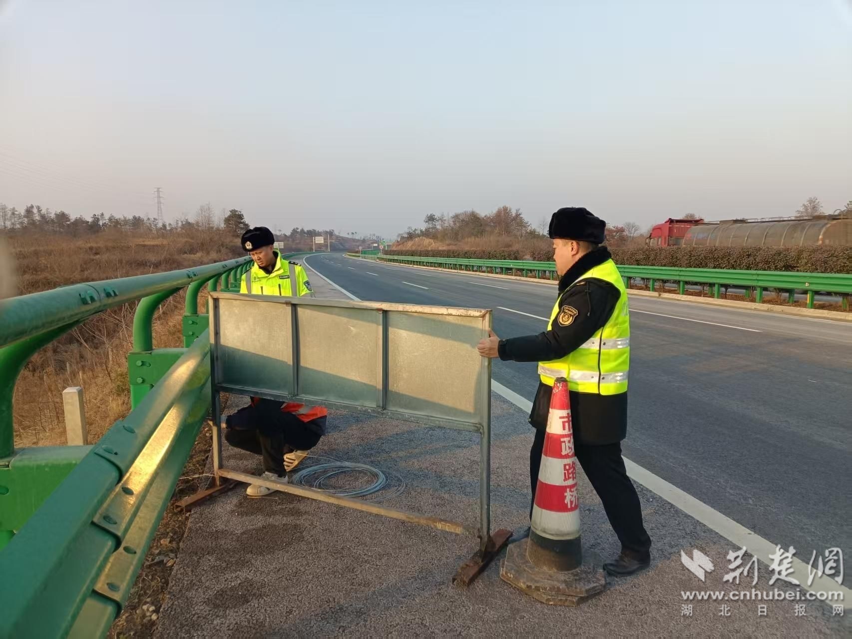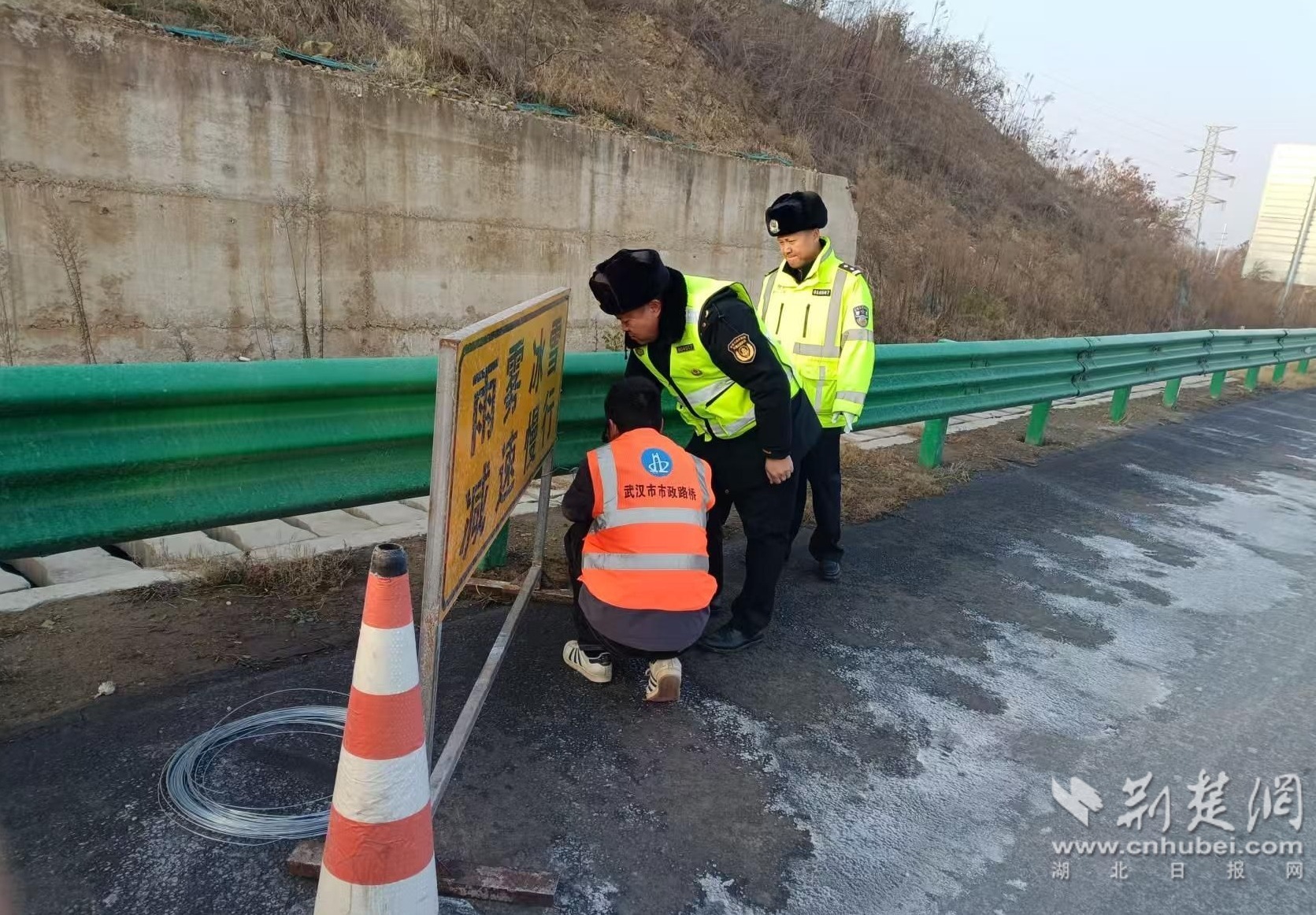 排查过程中,执法人员同步对路面残留积雪情况进行排查,及时组织人员清理,雪后共排查处置各类安全隐患17处,确保了武大高速路面警示设施完好有效,为过往司乘营造了安全畅通的出行环境。