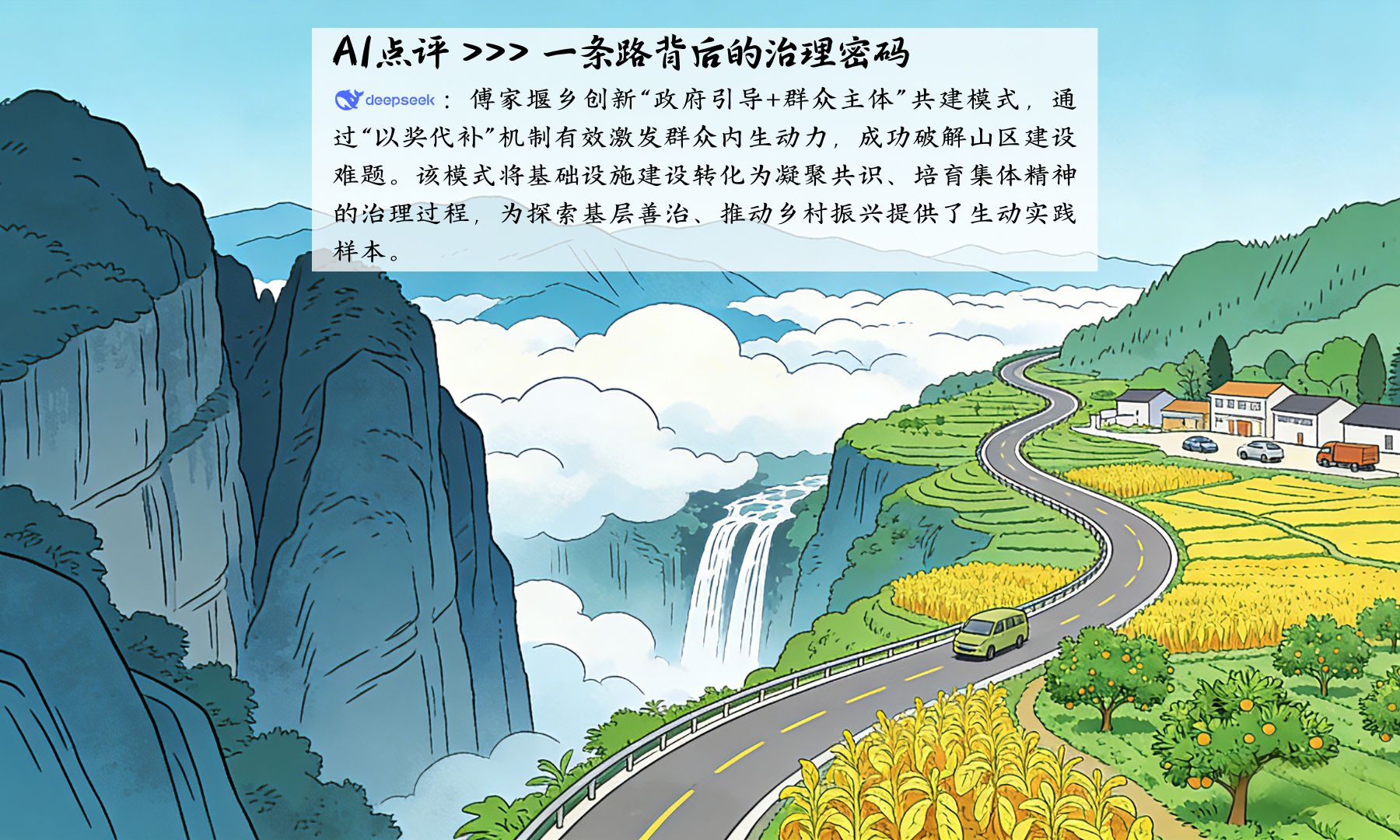 在外地的村民实时关注群里分享的道路状况,主动认领“云管护”责任。在本地的村民则自觉落实管护义务,日常清扫路面、雨后清理边沟,把管护责任扛在肩上。