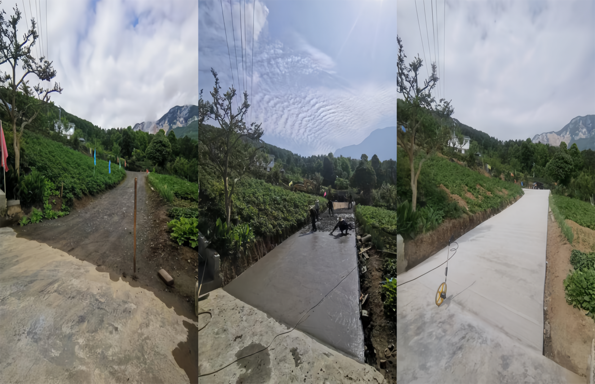 修路前、中、后期对比图。