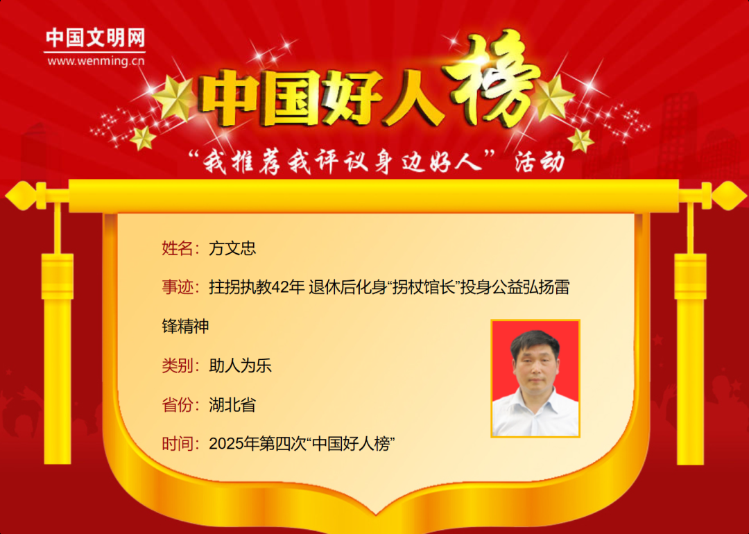 方文忠:拄拐执教42年 退休后化身“拐杖馆长”投身公益弘扬雷锋精神(荆门市)