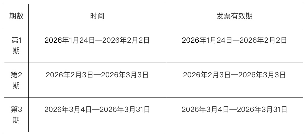 实施周期自2026年1月24日至2026年3月31日。分3期实施: