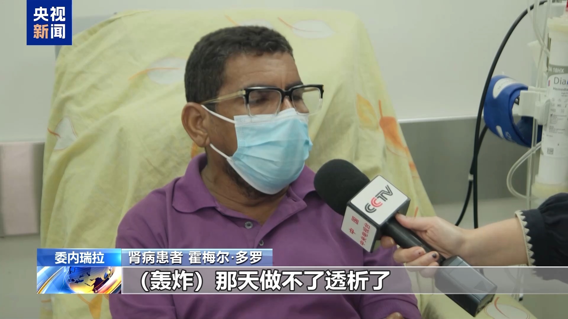患者霍梅尔·多罗已经进行了9年的透析,美国的轰炸让他一度担心可能无法继续接受治疗。