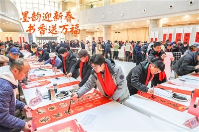 1月23日,第八届“书香联萃迎新春”书法名家写春联送万福惠民活动在省图书馆启动,40多名书法名家现场挥毫,为读者写春联,以笔墨书香传递祝福,迎接新春。