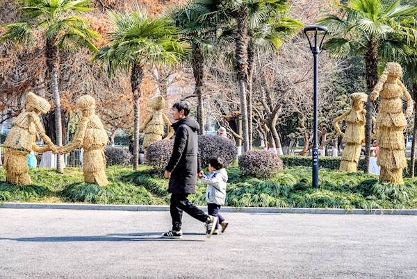 1月23日,武汉中山公园里多处造型各异的“稻草人”让游人觉得有趣。据悉,稻草包裹的主要是热带植物如铁树等怕冷的植物。正值寒冬天气,武汉园林和林业部门提前启动防寒应对机制,将市内多座公园里的怕冷植物穿上了冬装,部分植物被裹上稻草,变身造型生动的“稻草人”。 楚天都市报极目新闻记者李辉摄影报道