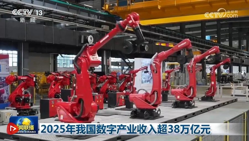 央视网消息(新闻联播):记者从工业和信息化部了解到,“十四五”时期,我国数字产业快速发展。截至2025年底,产业收入约38.3万亿元,实现利润3.1万亿元,相比“十三五”末期分别累计增长约39.5%、48.4%。