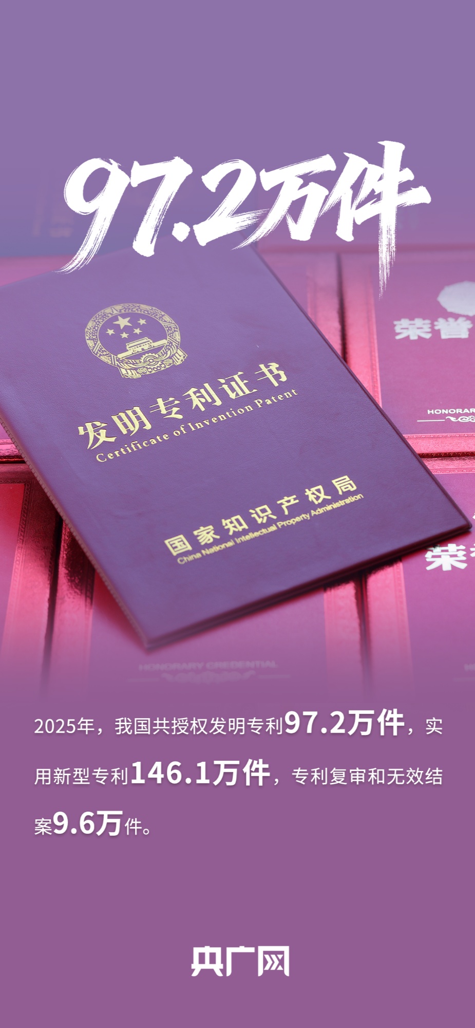 1月23日上午10时,国务院新闻办公室举行新闻发布会,国家知识产权局相关负责人介绍2025年知识产权工作进展情况,并答记者问。会上介绍,2025年我国共授权发明专利97.2万件,专利密集型产业增加值突破18万亿元,全球前5000个品牌中我国品牌价值位居全球第二……戳图!一组数据看国家知识产权工作重大成就!