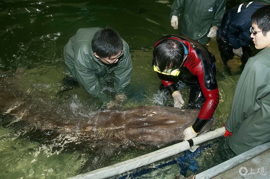 又比如,中华鲟受伤后的救治。水野中心内配备了B超、手术室等一系列先进设施,也开发了内窥镜、腹腔镜等技术,堪称中华鲟的“三甲专科医院”……