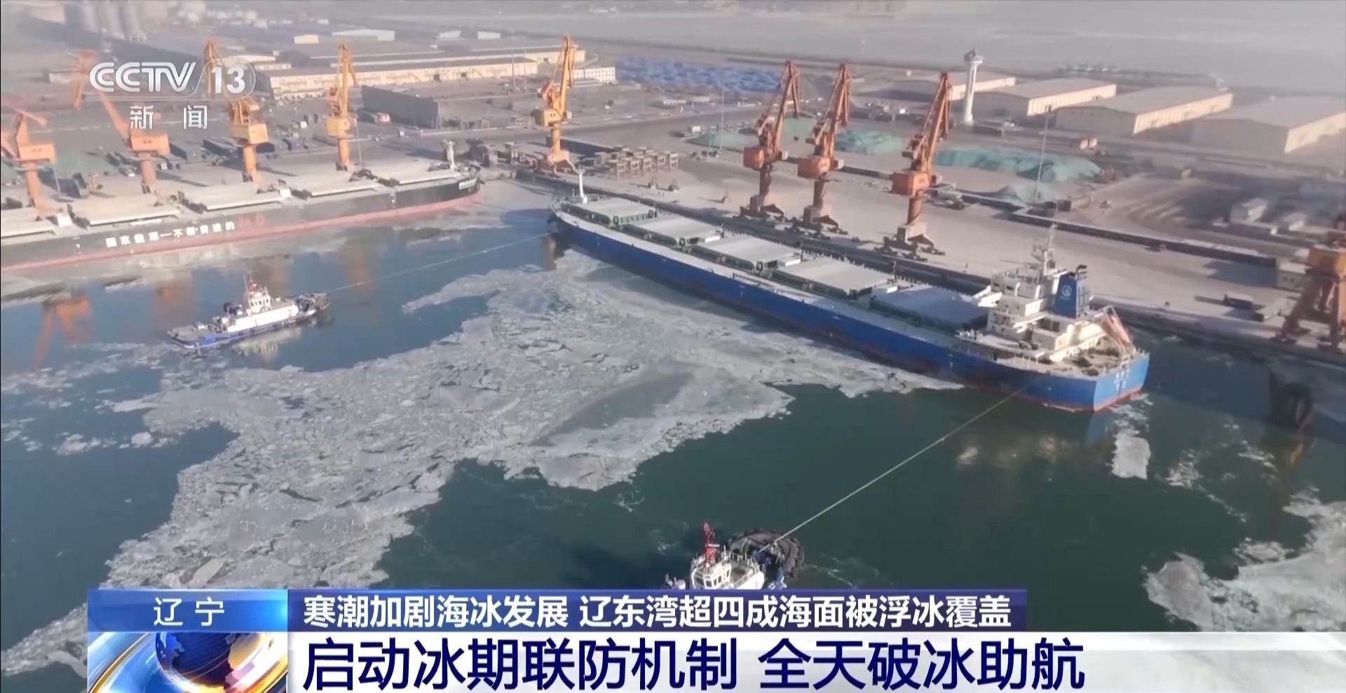 总台记者 季熠非:辽宁省锦州市锦州港是目前辽东湾海冰分布最为集中的区域之一。从上周末开始,辽宁迎来强冷空气,辽东湾的海冰也是在这样持续多日的寒潮中迅速发展的。