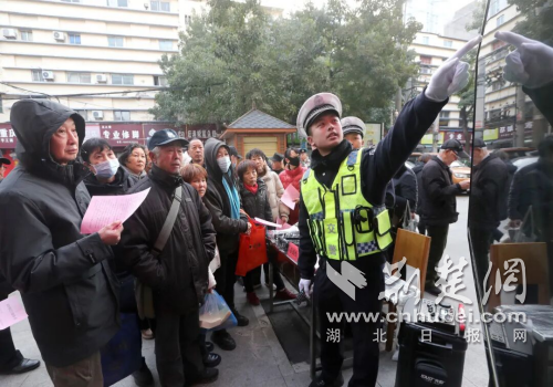 “荆门政法先锋”何斌为民辅警们讲解执法知识,通讯员 供图