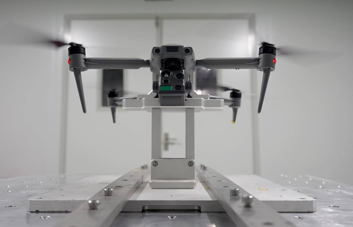 新型P300轻型无人机在进行振动测试。
