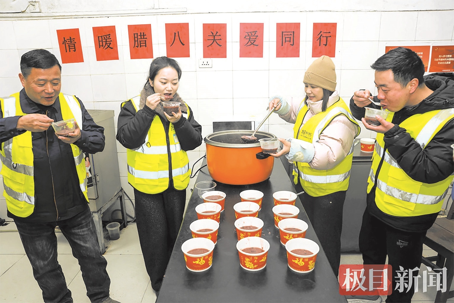 1月24日,农历腊八前夕,一场以“情暖腊八 关爱同行”为主题的送温暖活动在湖北港口物流集团蔡甸园区温情开展。园区食堂精心熬制了热气腾腾的腊八粥,由工作人员分发给辛勤工作的一线员工,在寒冬中传递了浓浓的暖意。活动现场气氛温馨,员工们手捧香甜的腊八粥,脸上洋溢着笑容。
