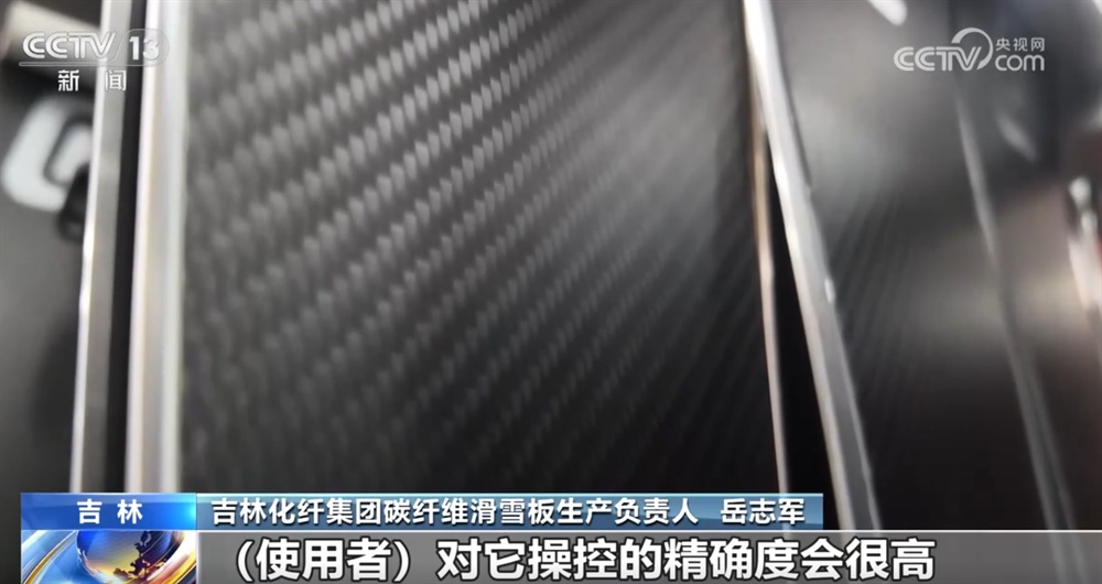 吉林化纤集团碳纤维滑雪板生产负责人 岳志军:重量上,我们的产品已经较传统的滑雪板减轻了20%以上,使用者对它操控的精确度会很高。