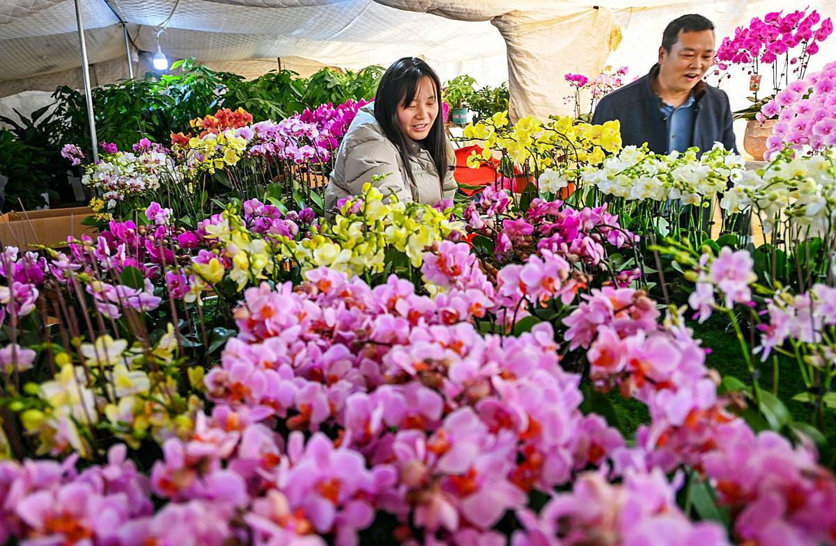 1月23日,记者在江夏区花博园看到,蝴蝶兰被扎成小型盆景,北美冬青长得高大如树,杜鹃花扎成造型独特的盆景,这里的创意花卉成了消费新宠。各式年宵花齐开盛放,消费者俯身细嗅、抬手轻抚,认真挑选着心仪的年宵花。新春的年味,便在这花香与欢闹声中,愈发醇厚浓郁。(湖北日报全媒记者朱熙勇摄)