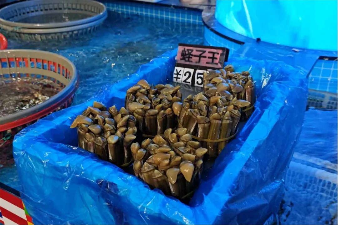 不仅是蟹,来自辽宁、山东洁净滩涂的蛏子王,已实现全程吐沙处理,买回家简单爆炒即可上桌。鲍鱼则按“头数”明码标价,5头鲍13元/只、8头鲍7元/只,来自湛江标准化养殖基地,品质稳定、处理便捷,昔日宴席“常客”如今已“飞入寻常百姓家”。