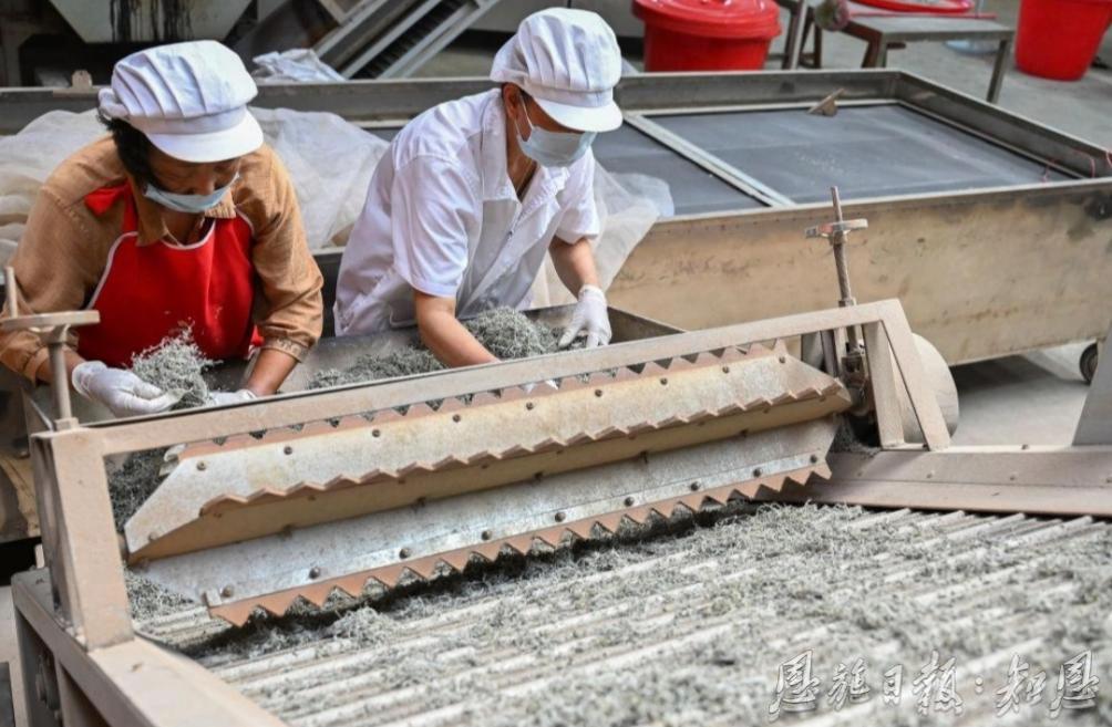 翔凤镇一藤茶公司生产车间,工人在筛选藤茶。 (资料图)