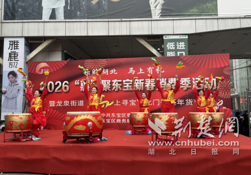 荆楚网(湖北日报网)讯(通讯员 郑雅琪)马年新春临近,年味愈发醇厚。1月26日上午,“乐购湖北‘马’上有礼”2026“惠”聚东宝新春消费季系列活动在荆门市东宝区龙泉街道北门街金城大厦门前盛大启幕,为期三天的“惠聚东宝 相约龙泉”马上寻宝北门街区年货节同步开启,市商务局党组成员、副局长张佳,市供销合作社联合社党委委员、副主任孙俊雄,东宝区委副书记李玉泉,区委常委、副区长伍赟出席,龙泉街道、各社区干部、志愿者,商户代表、新就业群体、居民齐聚现场,感受浓浓年味。