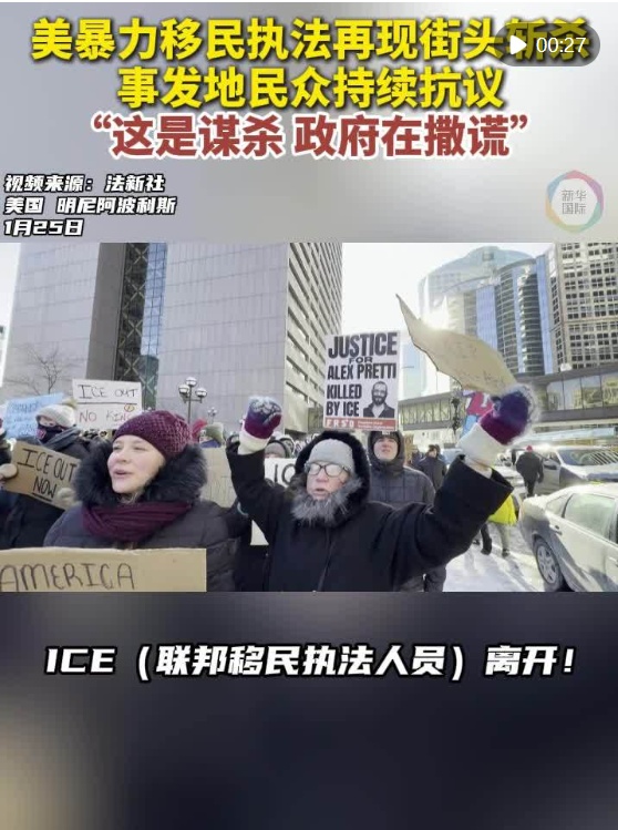 特朗普政府本月初在明州发起大规模移民执法行动后,已致两名美国公民殒命。本月7日,美国移民与海关执法局执法人员在明尼阿波利斯市抓捕非法移民时,开枪打死美国公民蕾恩·妮科尔·古德,激起当地及周边地区的抗议活动。(记者:王宏彬;视频:彭馨慧)
