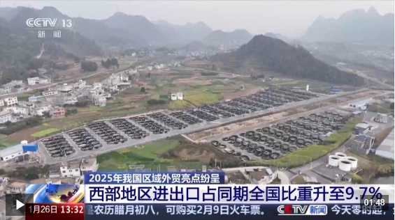 西部地区进出口占同期全国比重提升至9.7%