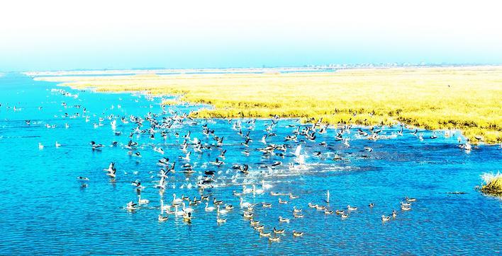 洪湖成为越冬水鸟天堂。(肖杨 摄)