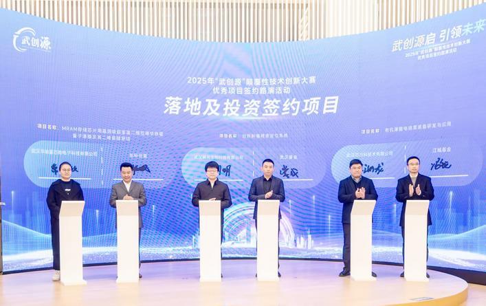 2025年“武创源”颠覆性技术创新大赛上,武创院“拨转股”支持企业武汉碘亮生物科技有限公司与武汉基金签约。