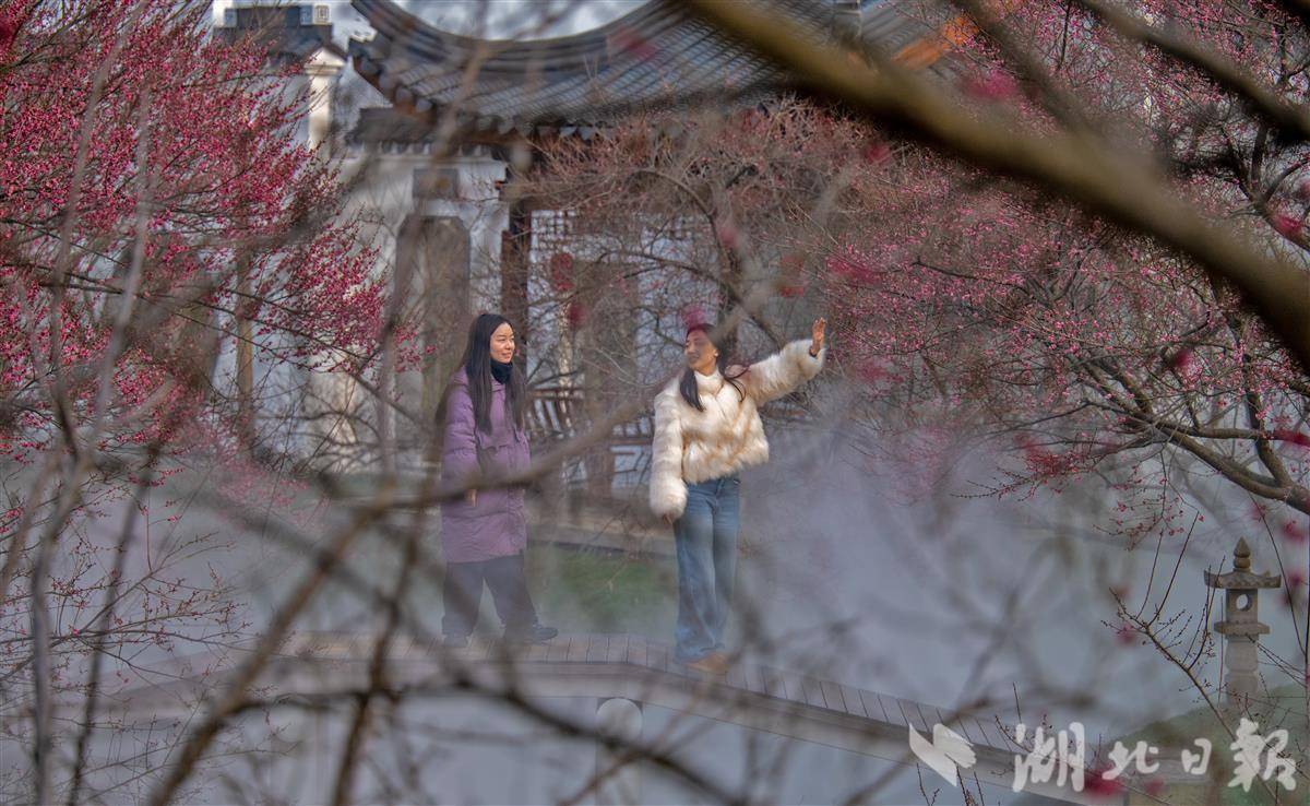 1月26日,荆州市荆州区八岭山镇恒荣梅园内寒梅绽放、暗香浮动,不少游人慕名前来赏梅拍照,沉浸式感受冬日梅景的独特韵味。恒荣梅园位于八岭山镇铜岭村,由全国绿化先进个人金用武返乡新建,占地约460亩,是江汉平原首个梅花主题乡村梅园,园内种植2.3万余株梅花,涵盖7大品种群165个品种,目前部分梅花已绽放,春节期间将迎最佳观赏期。园区还种植樱花约3100株及腊梅、海棠、映山红等多种景观花木,四季皆有景致。(湖北日报全媒记者 刘曙松 通讯员 肖敏 摄)