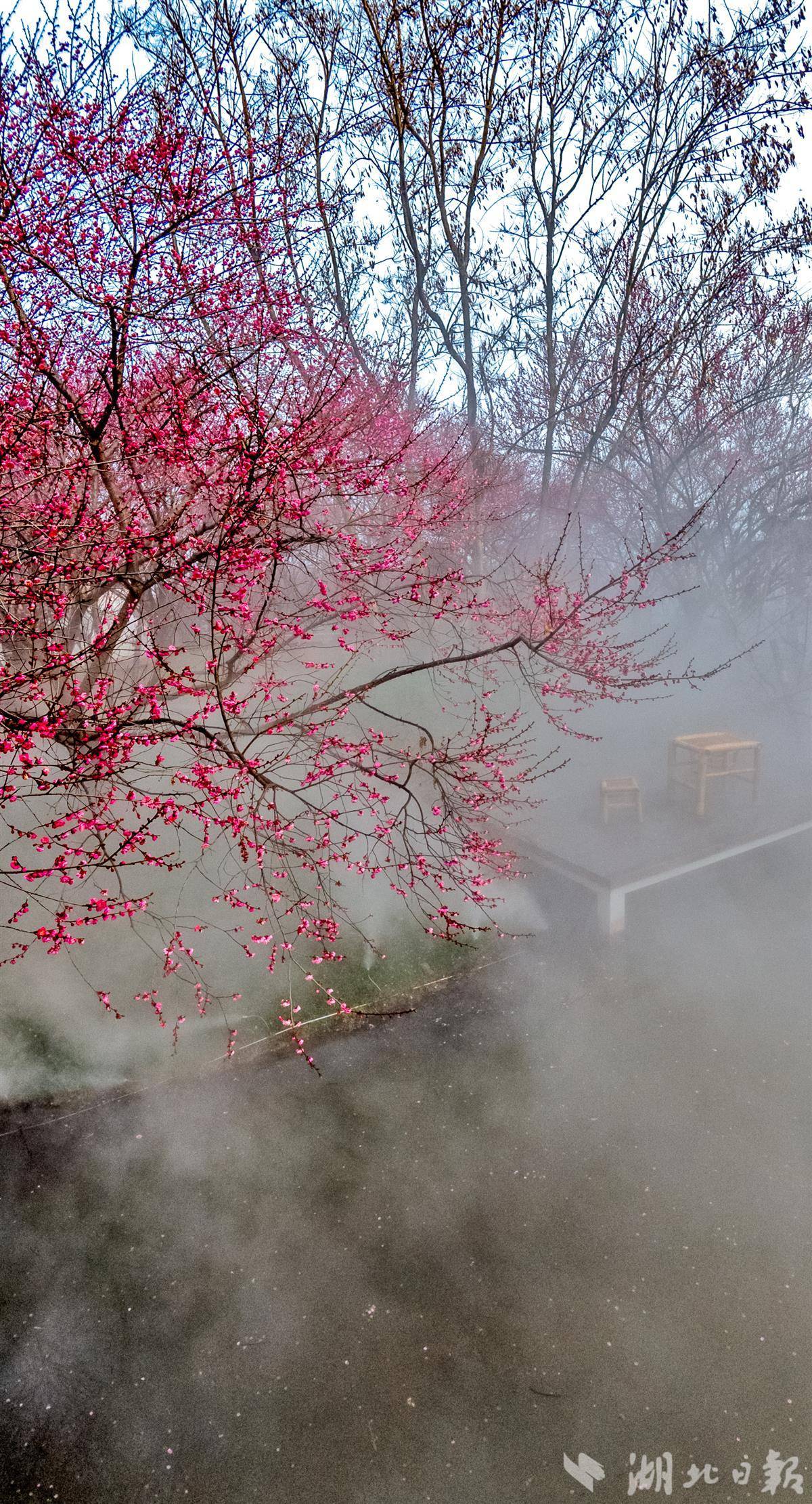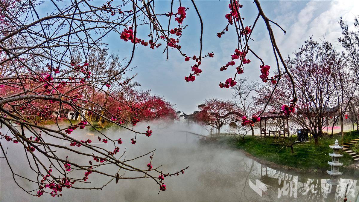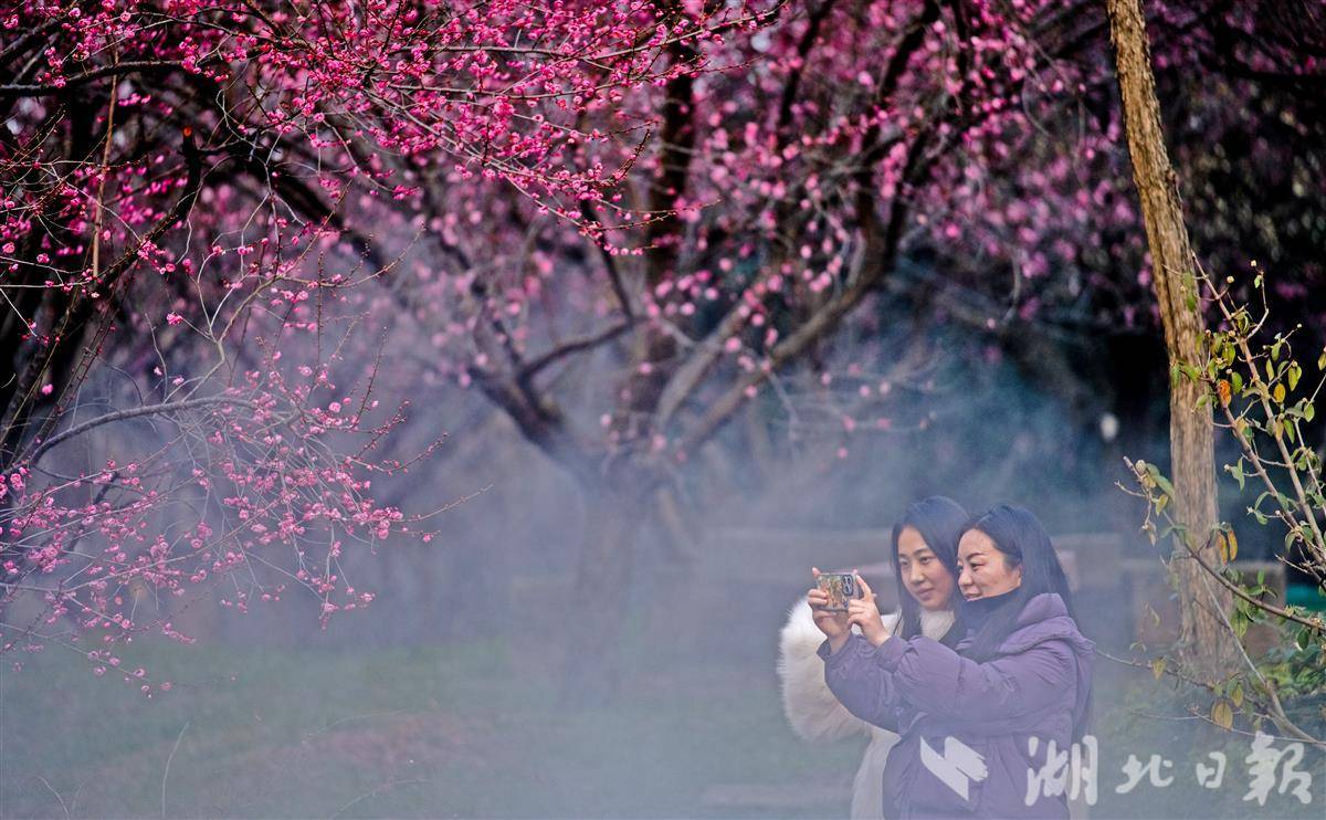 1月26日,荆州市荆州区八岭山镇恒荣梅园内寒梅绽放、暗香浮动,不少游人慕名前来赏梅拍照,沉浸式感受冬日梅景的独特韵味。