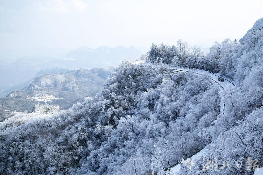 湖北日报客户端讯(通讯员陈功龙)巴东绿葱坡,海拔一千八百米处,一场落雪如约而至,将这片高山秘境雕琢成现实版的冰雪童话。盘山公路似银带蜿蜒,绕着雾凇凝枝的山峦向上舒展,远处层叠峰峦裹着厚雪,在淡蓝天幕下晕出朦胧的水墨轮廓,天地间尽是素白清宁。