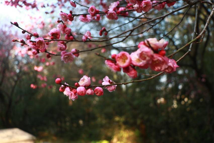 “不知近水花先发,疑是经冬雪未销”,连日来,受气温影响,英山县烈士陵园各色梅花竞相绽放,十分娇艳,吸引着大批市民前来赏花、游玩。(湖北日报客户端通讯员 付向阳)