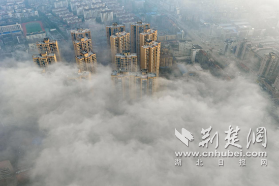 荆楚网(湖北日报网)讯(通讯员 肖朕天)1月27日早晨,京山市出现大雾天气,整座城市被浓厚的雾气笼罩。