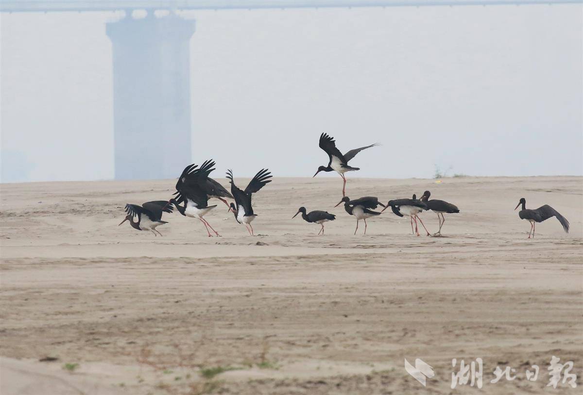 “黑鹳是一种大型涉禽,天兴洲独特的浅滩环境、丰富的食物资源以及开阔的飞行空间为它们提供了良好的越冬环境。”武汉市生态环境局生态处有关人士表示,来天兴洲越冬的黑鹳数量稳中向好,与天兴洲实行生态环境保护措施有很大关系。