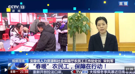 安徽省人力资源和社会保障厅农民工工作处处长 宋利军:我们前期就农民工的服务保障需求进行了一个调研,根据了解情况来看,农民工在春节前的服务保障需求主要还是集中在出行保障、就业服务和权益维护。下一步将围绕农民工的实际需求开展三方面的重点工作。
