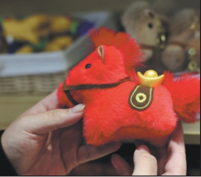 A horse-themed doll, which symbolizes getting rich soon, is displayed at a shopping mall in Beijing on Friday. Wang Zhuangfei/China Daily