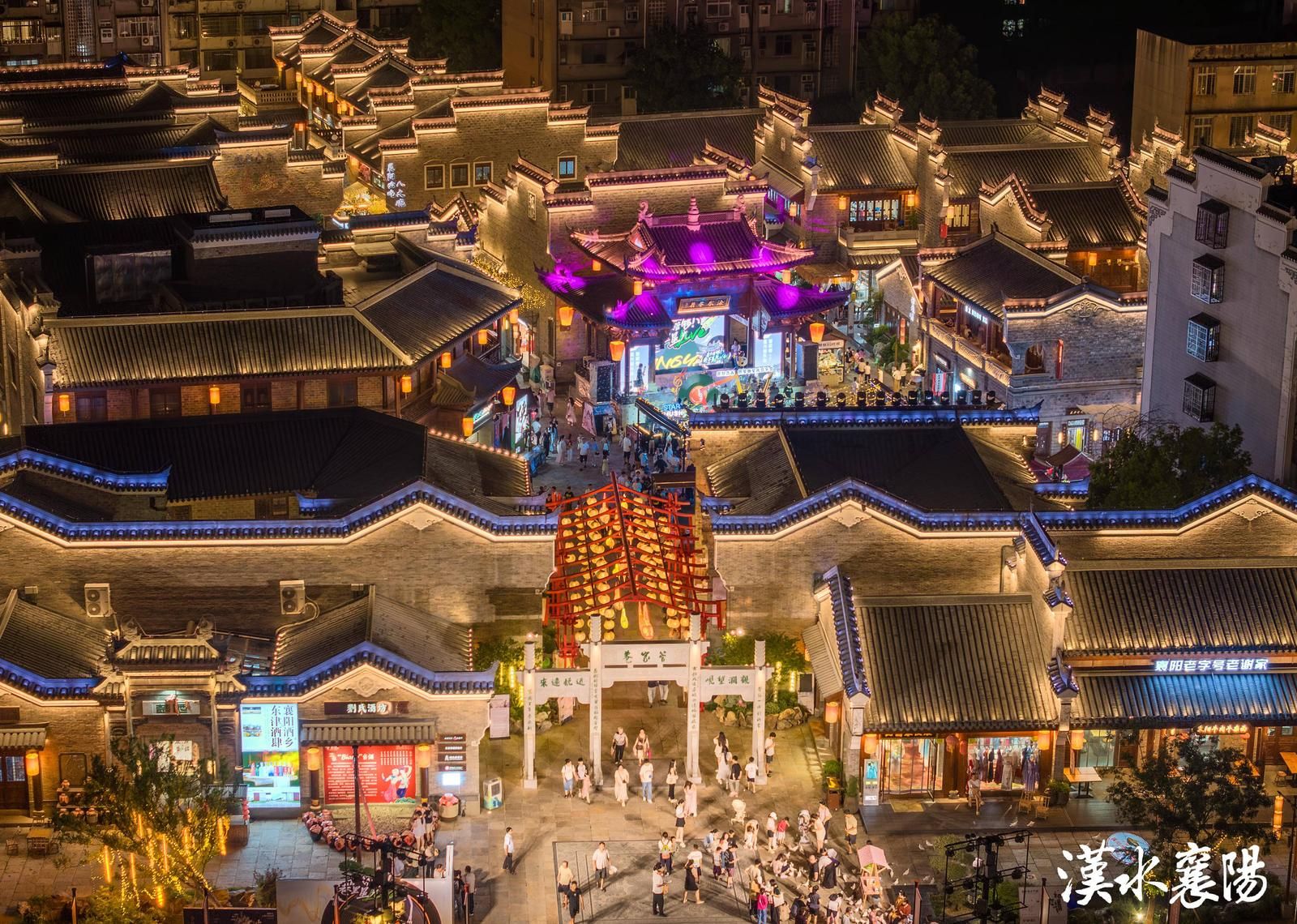 夜幕下的襄阳古城,流光溢彩,游人如织。璀璨的光影秀、升腾的烟火气,让沉睡的历史“活”了起来。
