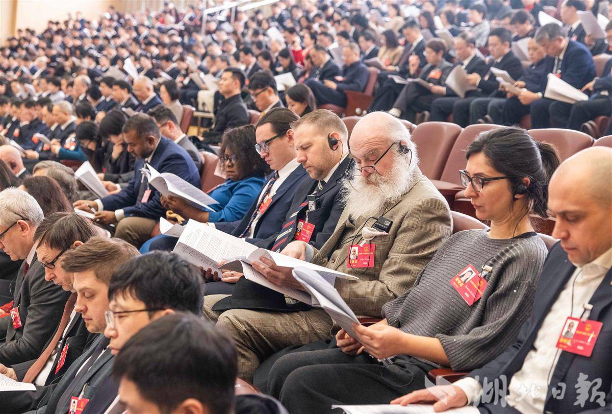 1月27日,湖北省十四届人大四次会议开幕会现场,外籍人士旁听开幕会。 (湖北日报全媒记者 薛婷 摄)