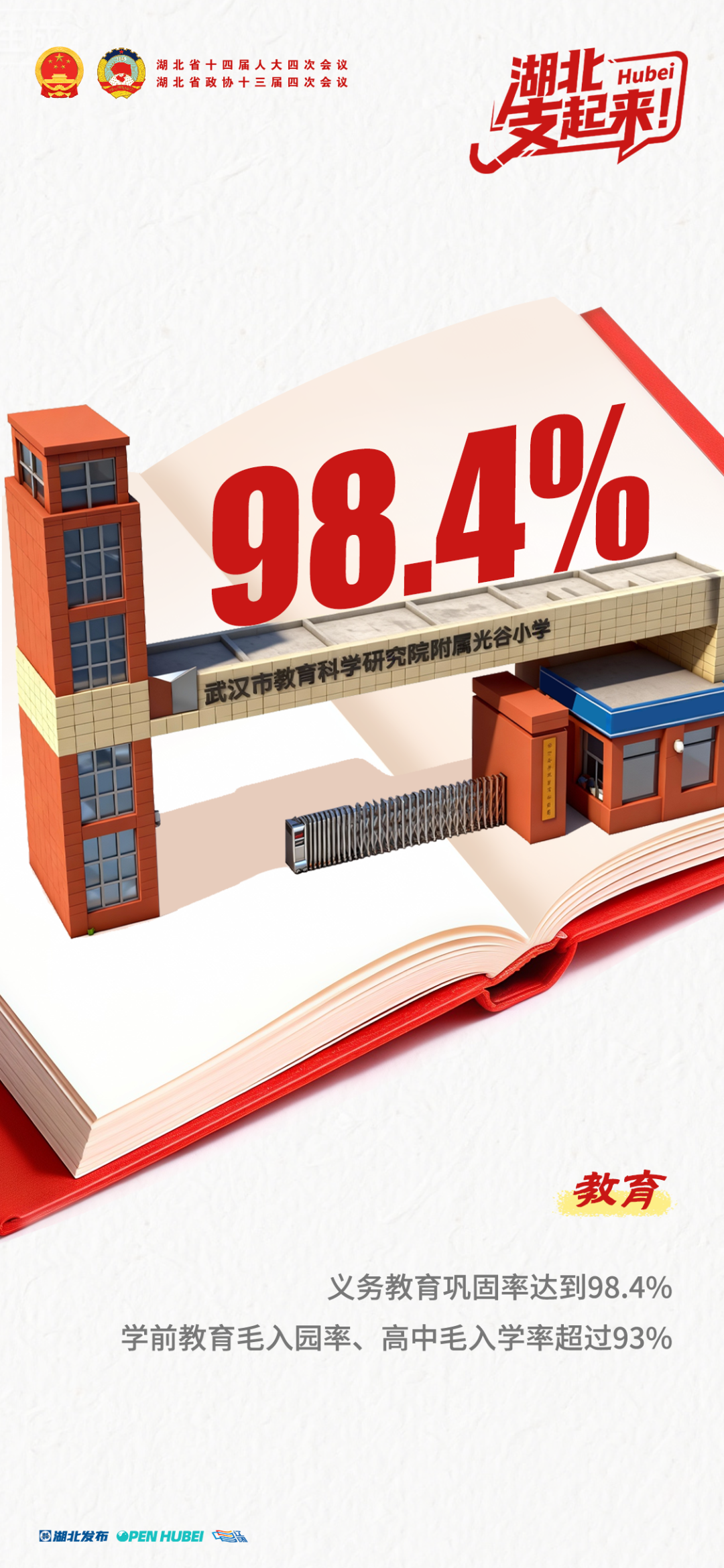 义务教育巩固率达到98.4%,学前教育毛入园率、高中毛入学率超过93%。