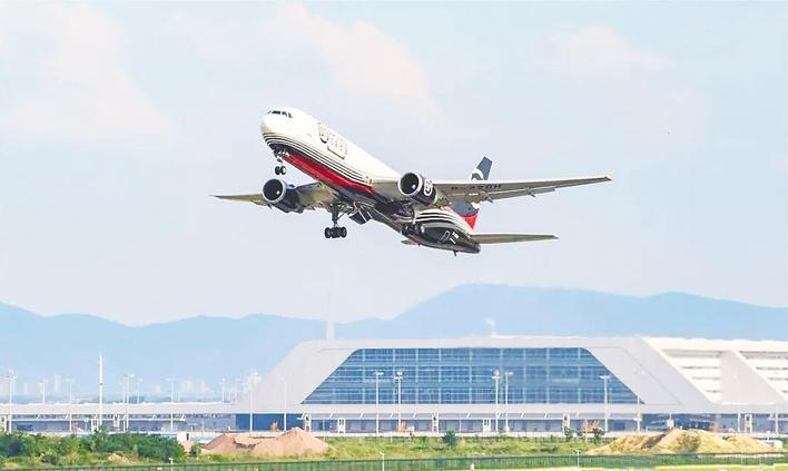 花湖国际机场全货机满载“湖北造”直冲云霄。