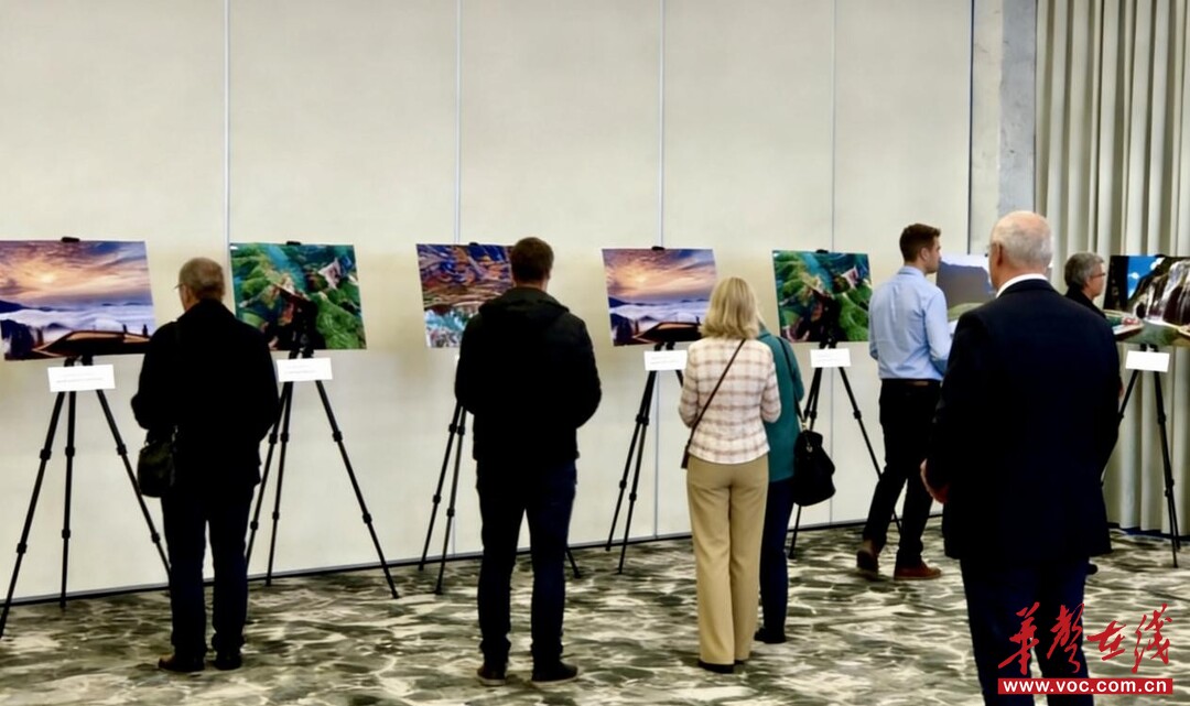 与会嘉宾驻足欣赏湖南文旅图片 图片均由省文旅厅提供