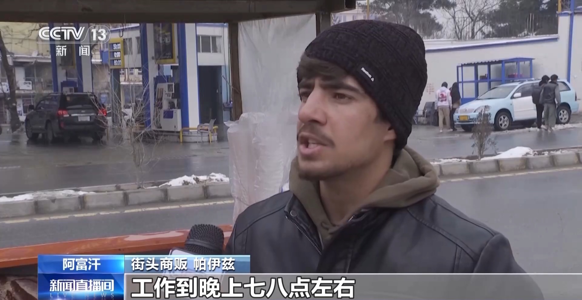 阿富汗青年帕伊兹今年25岁,平时靠在喀布尔街头卖小吃维持生计。帕伊兹每天都要在外忙碌一整天,能赚到的净利润大约只有200阿富汗尼,约合人民币21元。今年冬天的喀布尔尤为寒冷,地面结冰、寒风刺骨,但帕伊兹却不敢休息,因为他的小吃摊是全家唯一的收入来源。