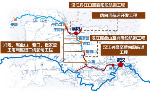 汉江干线航道船闸、唐白河航运开发项目分布