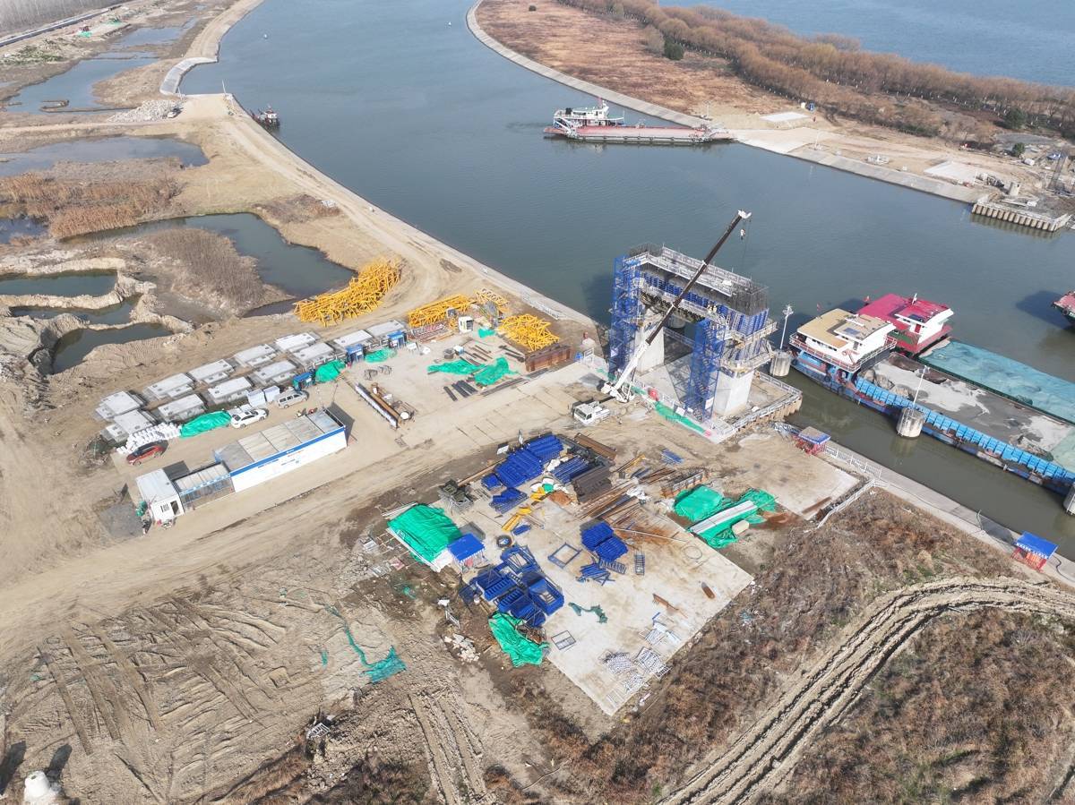 汉江兴隆枢纽二线船闸正加快建设(受访者供图)
